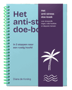 Diana de Koning: “Onderzoek laat zien dat actief bezig zijn een veel groter ontspannend effect heeft dan méér informatie tot je nemen. Daarom lees je weinig en is er vooral veel te doen in Het anti-stress doe-boek”